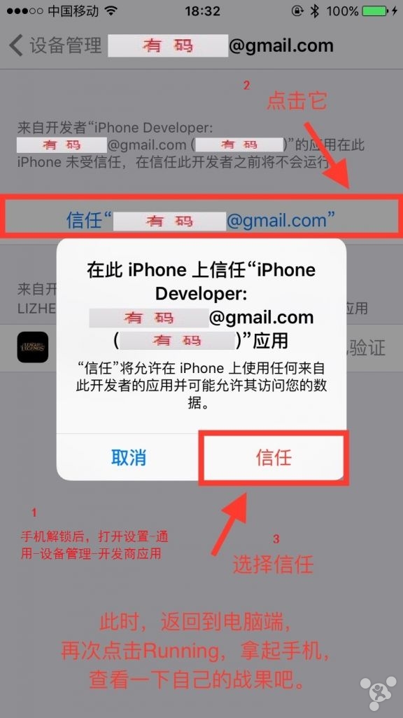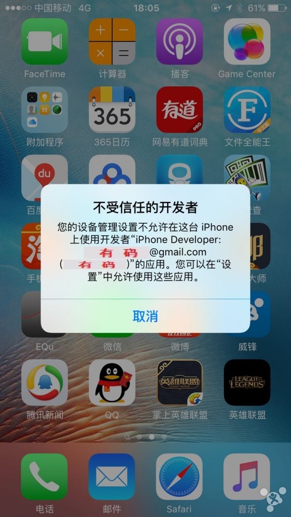 III. 将此XXXX.ipa文件用其它的第三方软件安装在手机里就可以了。当然,安装完毕打开的话会提示需要信任它,那么只要添加信任就OK了。