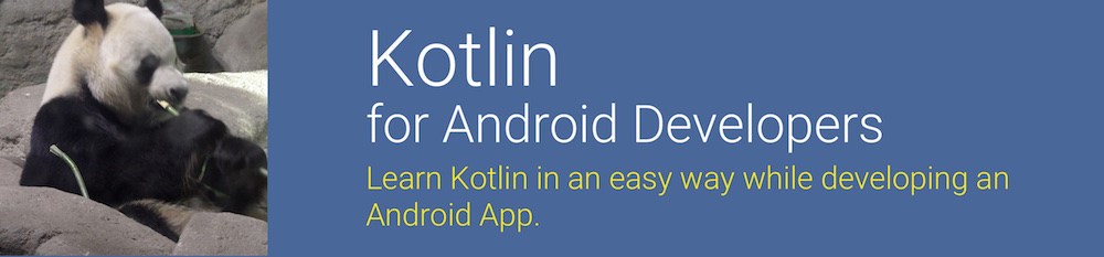 - Kotlin for Android Developers, The book:如果你想快速和持续的学习,这本书是最好的方法。如果你已经了解了Andriod,这将是一个在你的项目中使用kotlin的快速途径。我已经编写很长一段时间了,当新版本发布的时候我就会更新它。已经更新到了Kotlin 1.0 RC。除此之外如果你订阅了这个列表,你将收到免费的头5个章节和这本书末尾显示的一个购买折扣。