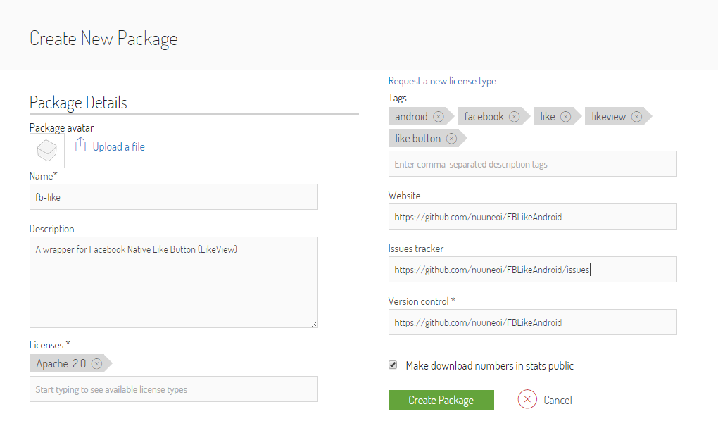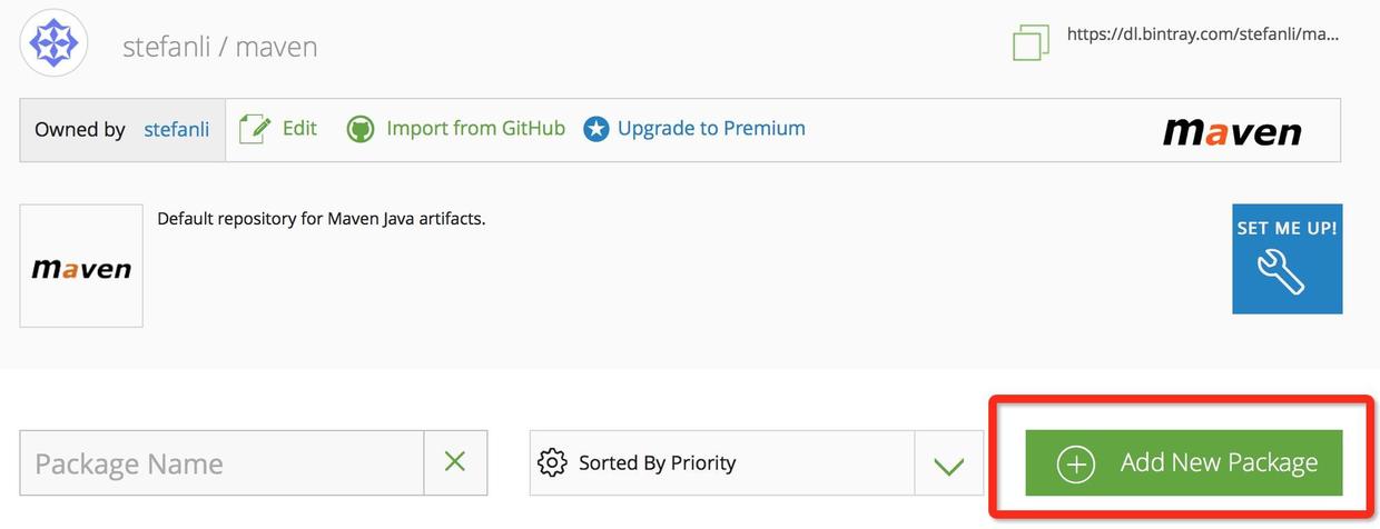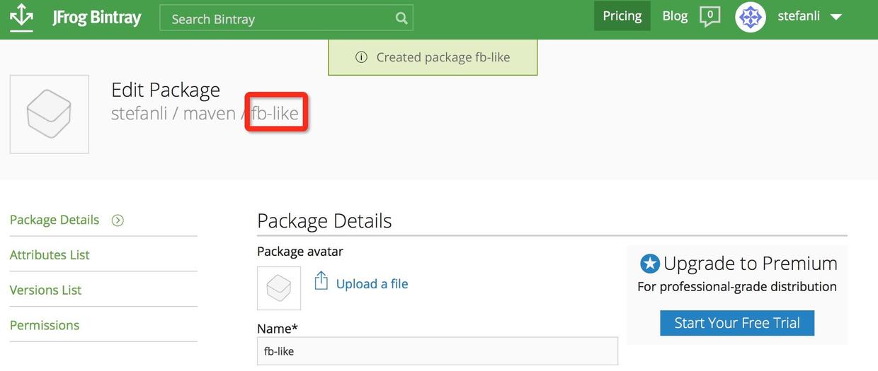 首先,你需要在bintray上创建一个包,为了完成这步,你需要一个bintray账号并且在网站上创建一个包。