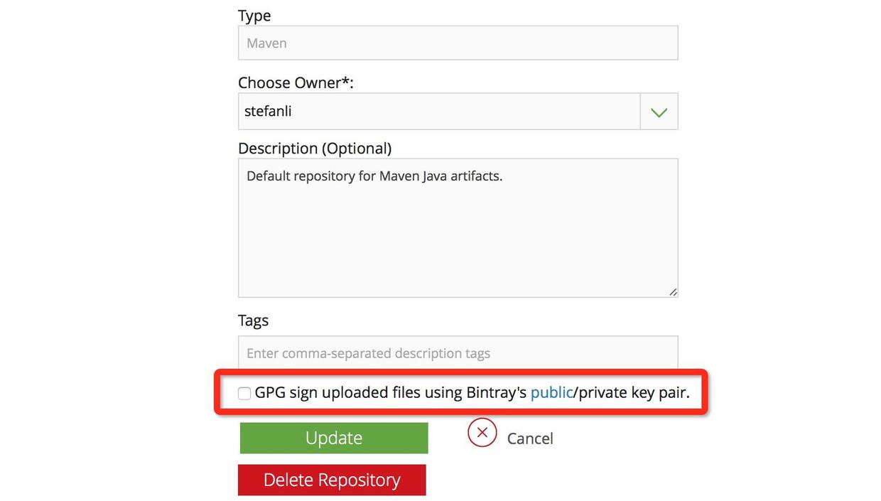 点击Update保存,到现在为止,每一个单独的library上传到Maven仓库都能够被自动签名,而且已经准备好一键发布到Maven Central。