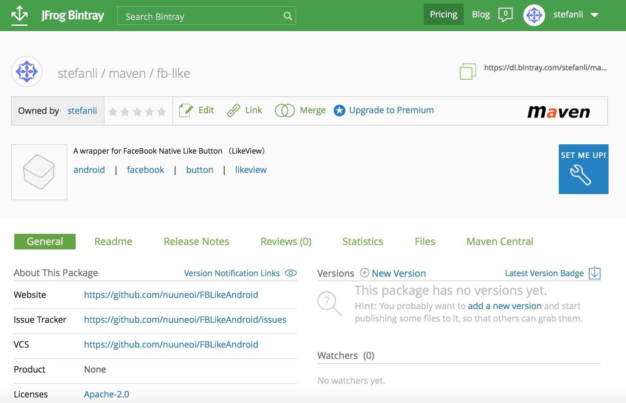 接下来我们什么也不需要做,等待两三个小时,让bintray团队通过我们的请求就可以了。一旦审核通过,你将会收到一封邮件,提示信息有改变。现在让我们回到网页,你可以看到在Linked To部分有所改变。