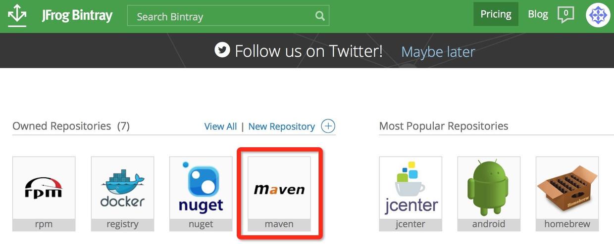 好了,现在你已经在bintray上有了自己的Maven仓库,准备好上传自己的library文件了。