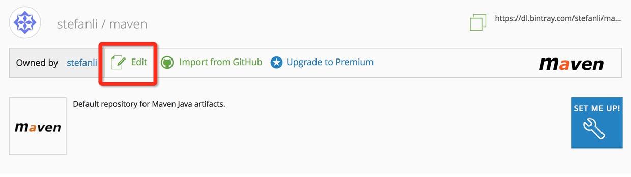 最后一步是开启自动签名,到Bintray的主页,点击maven,再点击Edit。