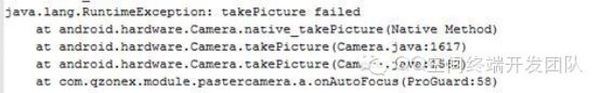 还有一点要注意:camera.takePicture()在执行过程中会执行camera.stopPreview来获取拍摄帧数据,表现为预览画面卡住,而如果此时用户点击了按钮的话,也就是调用camera.takepicture,也会出现上面的crash,因此在开发时,可能还需要屏蔽拍照按钮的连续点击。